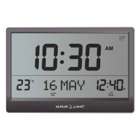 Horloge avec prise en compte des horaires de prière. Fonctions : Température, Calendrier Hégirien et Grégorien, Adhan, Horaires de prière de toutes les villes du monde (les principales villes en France). notice d'utilisation en anglais fournie et indication de réglage sur le site du constructeur  au lien suivant : http://alfajr.com/en/clock_features.html